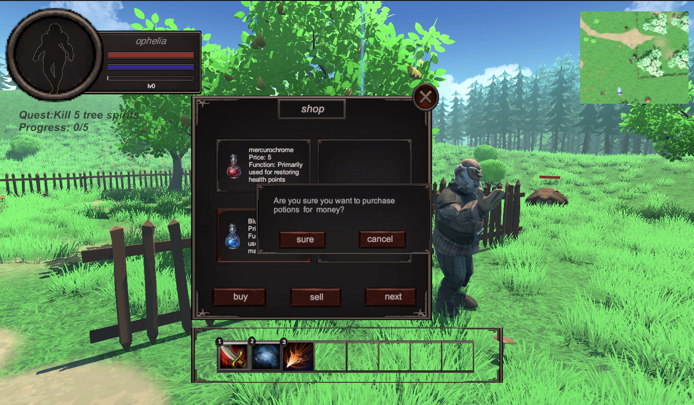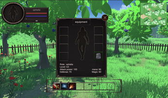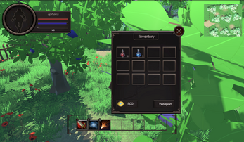 Backpack system: A simple inventory UI that allows you to pick up, use items (such as potions), and equip weapons.